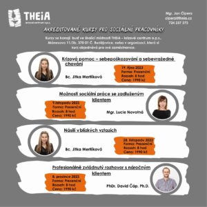 Místo konání: THEiA – krizové centrum o.p.s., Mánesova 11/3b, 370 01 Č. Budějovice